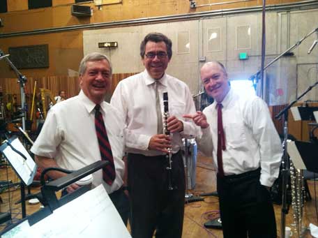 John Mitchell, Steve Kujala, and Dick Mitchell checking out the new AV Clarinet on the sound stage at Fox for the motion picture “Dawn of the Planet of the Apes” |